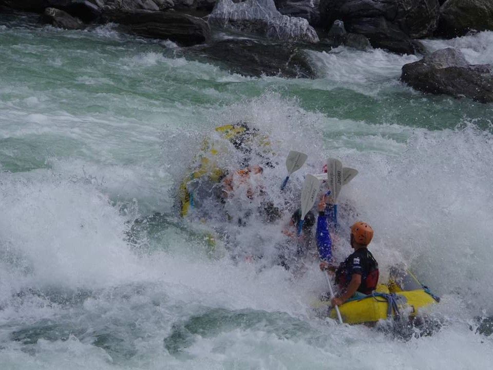 ラフトボートにはお客様最大7名+ガイド1名、最大8名のクルーで激流に挑みます。