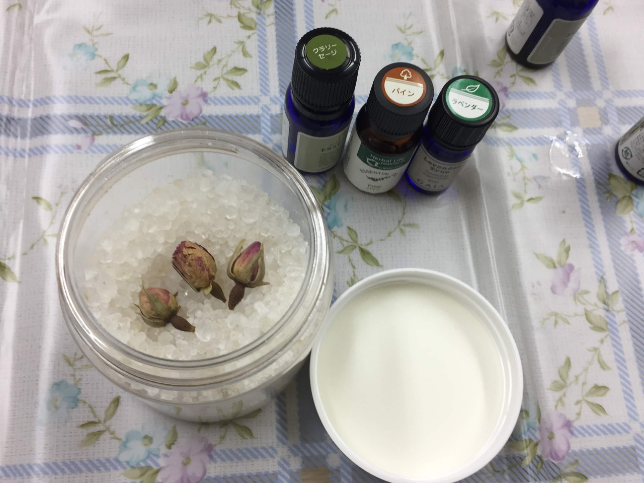 【アロマバスソルト】楽しく手作りアロマ体験!どなたも簡単♪ファミリー・女性・カップルにおすすめ☆オンライン体験も