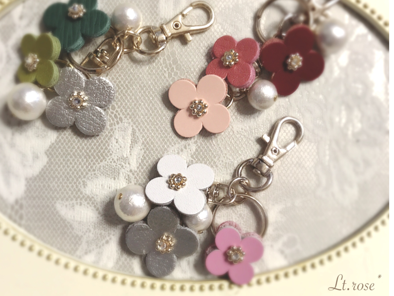 レザーフラワーを使ったバッグチャームorキーチャーム