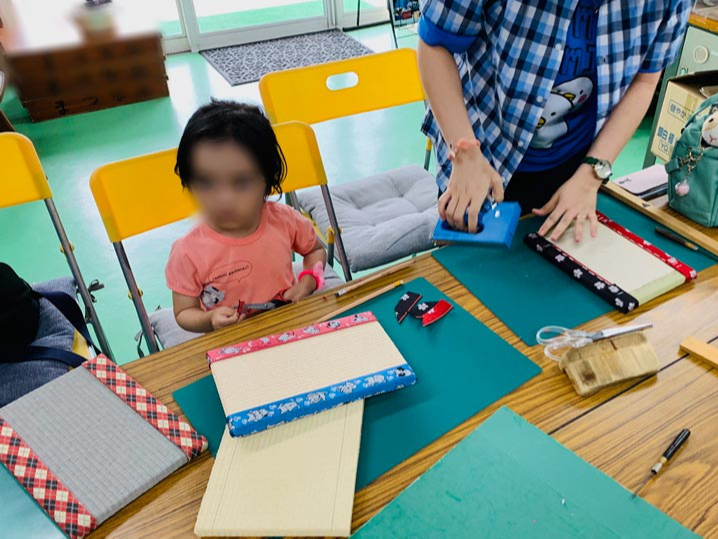 コースターの畳とテープを選んであとは四方の縁にテープ貼るだけなので簡単かと思いきや、テープが上手く均等に貼れず…それもまた楽しかったです!