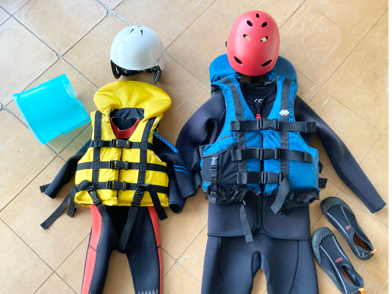 ライフジャケット、ヘルメット、ウエットスーツ(水温が低い時期)、撮影した写真データ