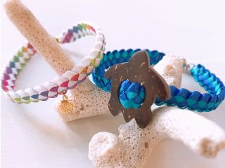 ハワイアンカフェ&ダイニングバーU'ilani併設のスタジオでリボンレイの手法で作るブレスレット作りを体験♪