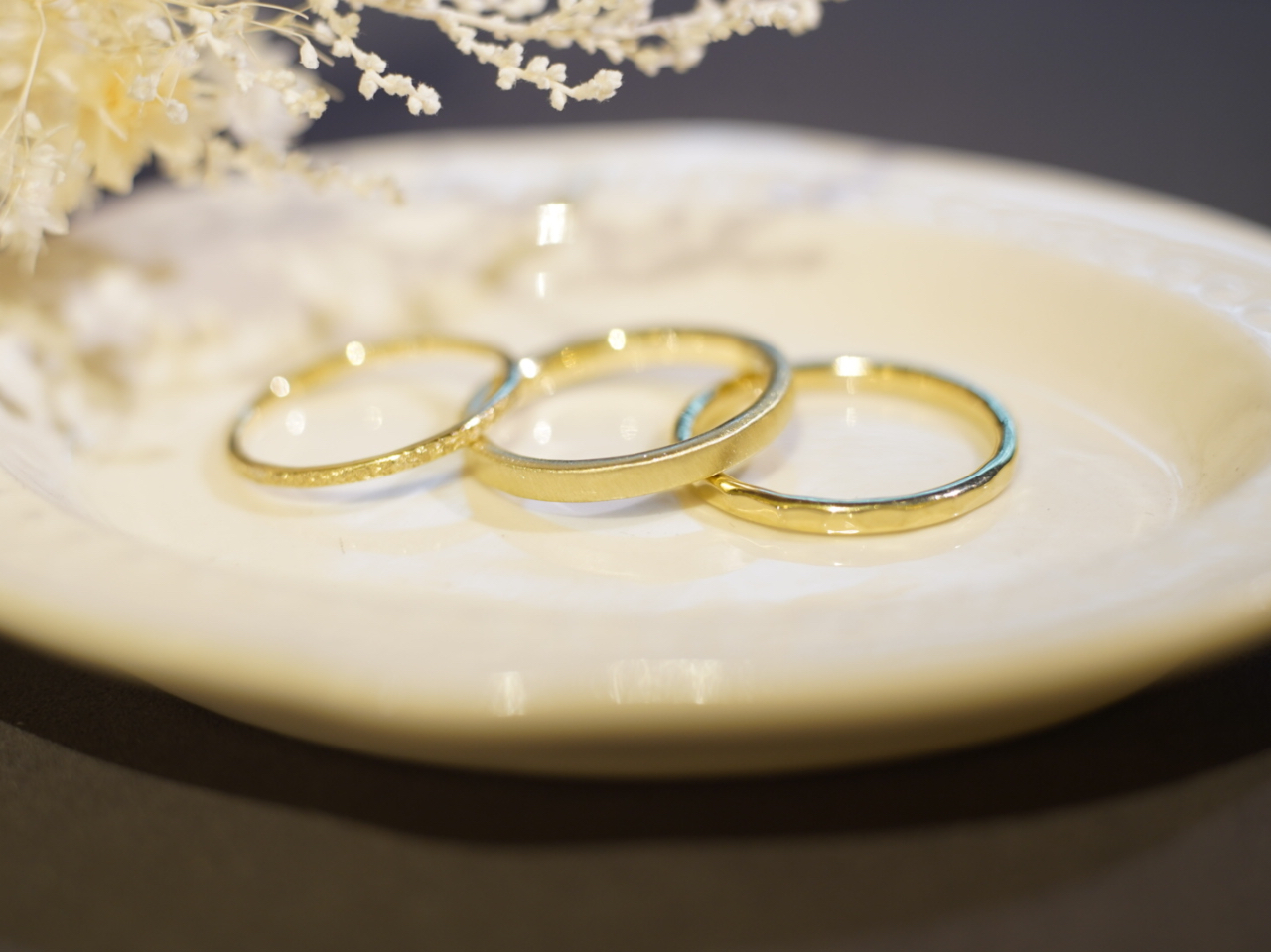 昔ながらの鍛金という製法で、1点1点お作りする世界でひとつの指輪が出来上がります。