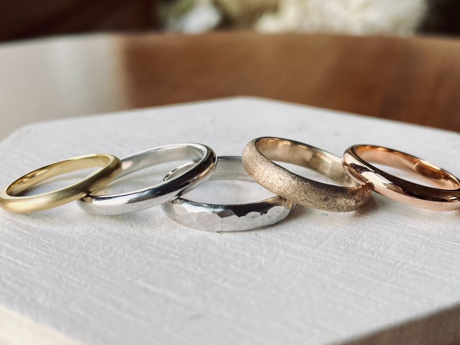 指輪の表面をランダムにハンマーで叩いて仕上げる加工。一つとして同じにならないので、より手作り感を楽しみたい方に。