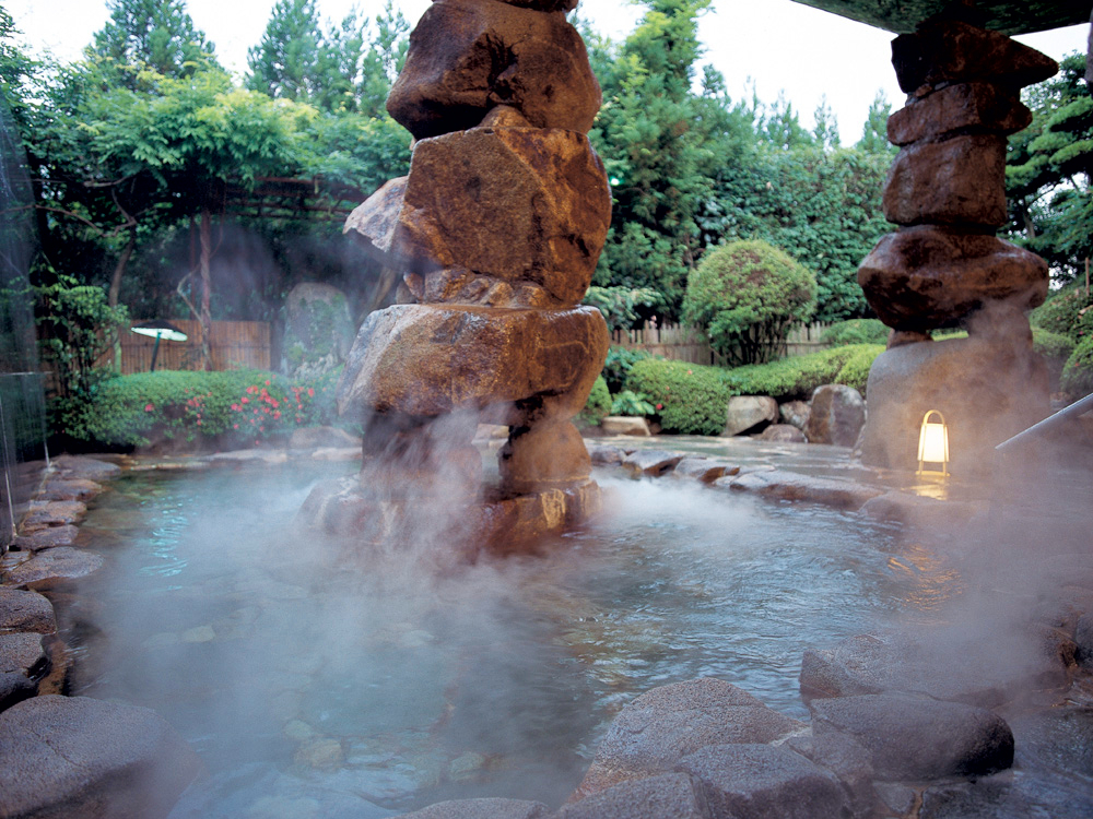 【女性露天風呂】石積みモニュメントのある露天風呂が大変人気です。ごゆっくりとお寛ぎください。