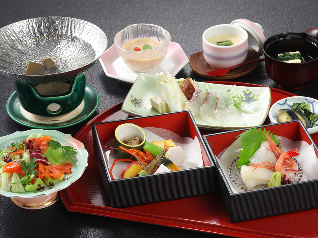 お食事は、一番安いプランの予約でしたが、レストランの個室に通していただき、仲居さんから料理の説明を受けながら優雅でリッチな気分の昼食をとることができました。内容、量、味ともに大満足でした。