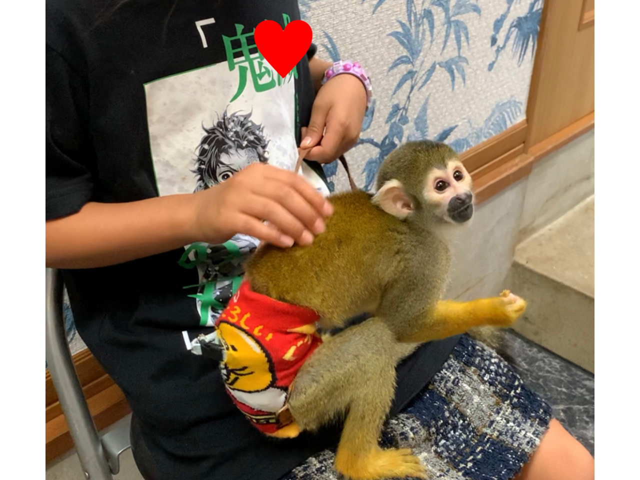 屋上でリスザルと記念撮影や触れ合い 2,000円