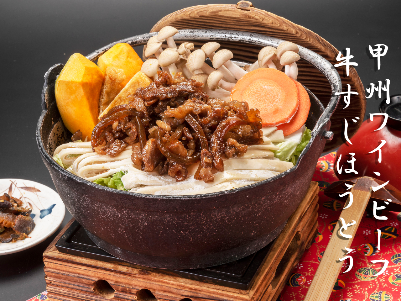 甲州ワインビーフ牛すじほうとうをお楽しみください。