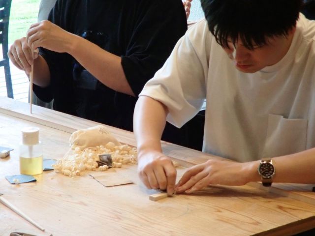 鉋(かんな)で材料を削って、だんだん箸の形になっていく過程を楽しめます。
