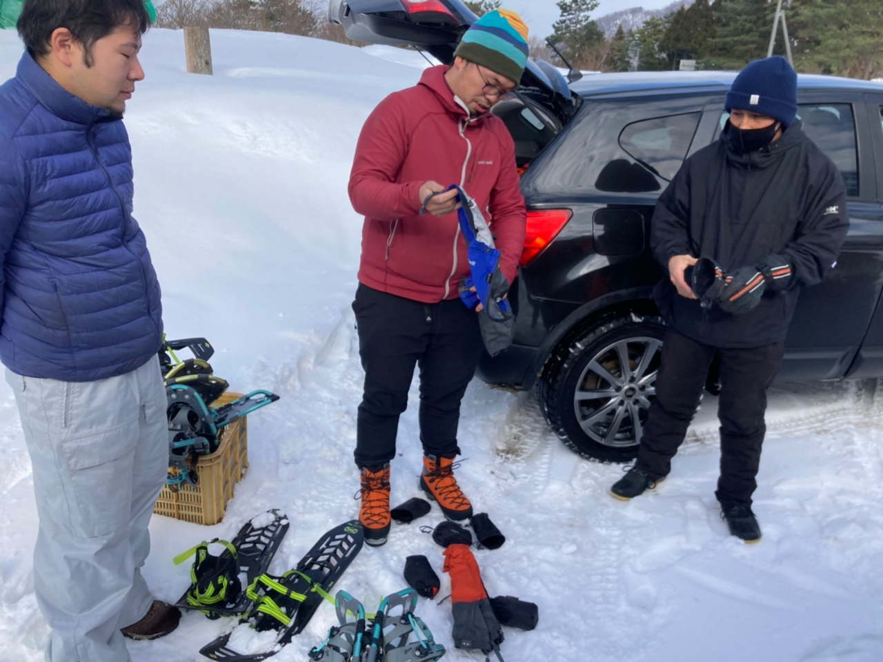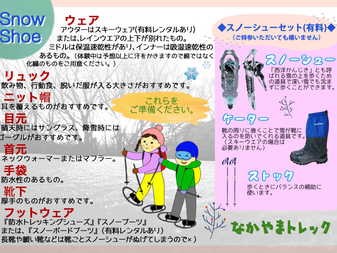 スノーシューは「西洋かんじき(ワカン)」とも呼ばれる雪の上を歩くための道具。