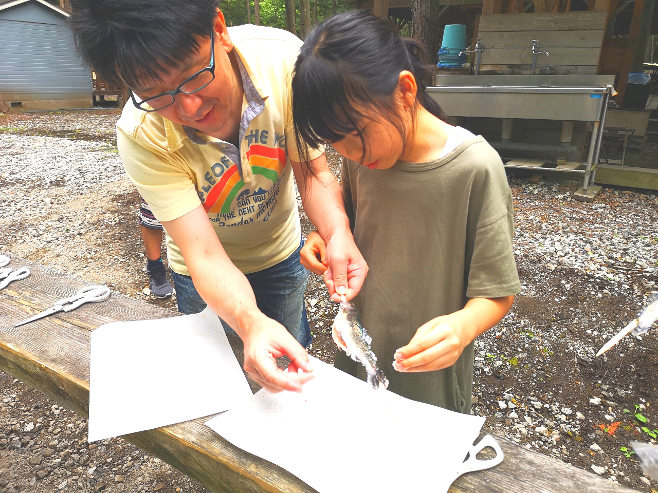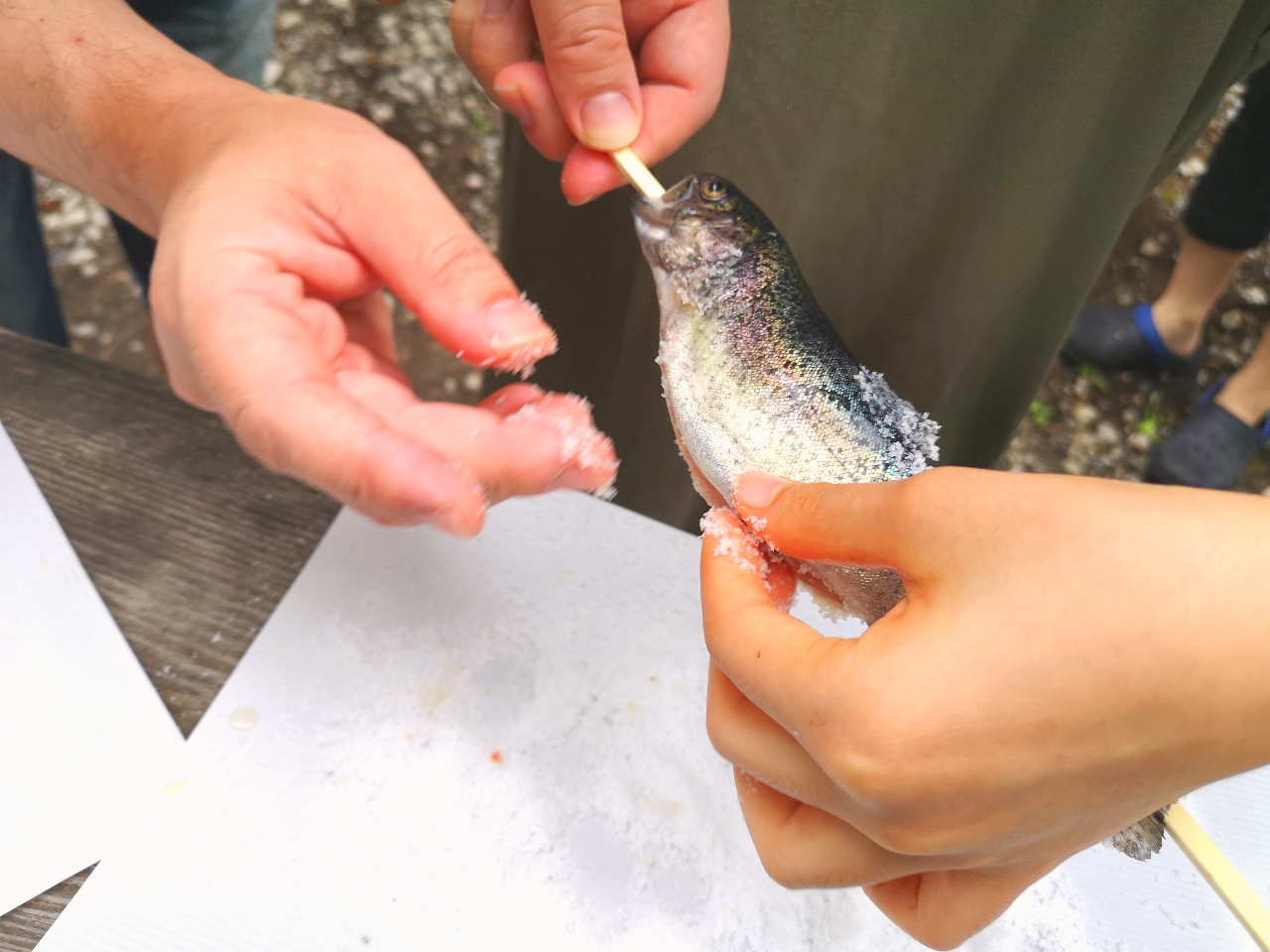 ニジマスを上手く捌けたかい?塩をかけすぎるとしょっぱいよ!笑