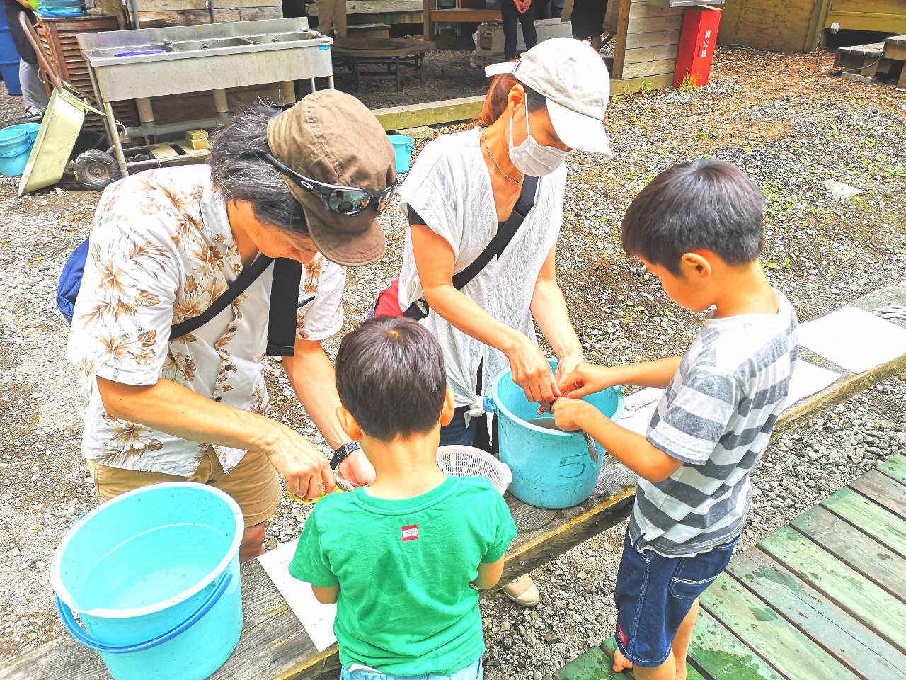 森と湖の楽園でのニジマスつかみ取りは、一から自分で体験することが出来ます♪