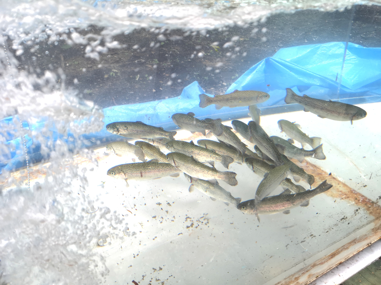 ニジマスのつかみ取り体験 すばやく泳ぐさかなたちを取れるかな?