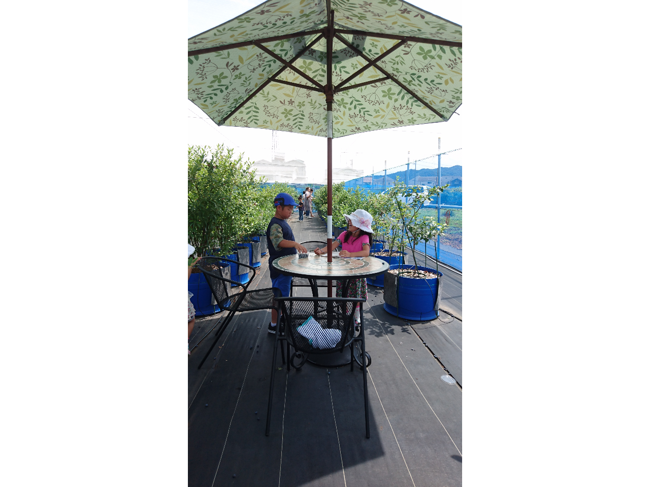 ブルーベリーの木が一本ずつ大きなポットに植えられており、人が歩く地面は平らで、シートで覆われていました。これなら、小さな子供でも安心です。詳細情報をみる
