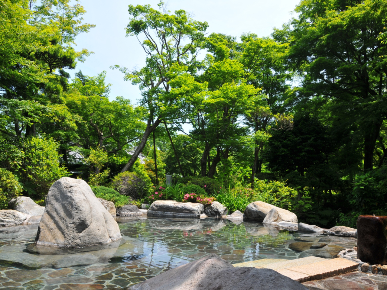 ・一万坪の庭園と6本の豊富な自家源泉100%掛流し、箱根屈指の毎分最大で720リットルの温泉湧出量を誇ります。お庭の樹木が一望出来る「自然石の庭園露天風呂」やご家族でゆったりつかれる「貸切風呂」など