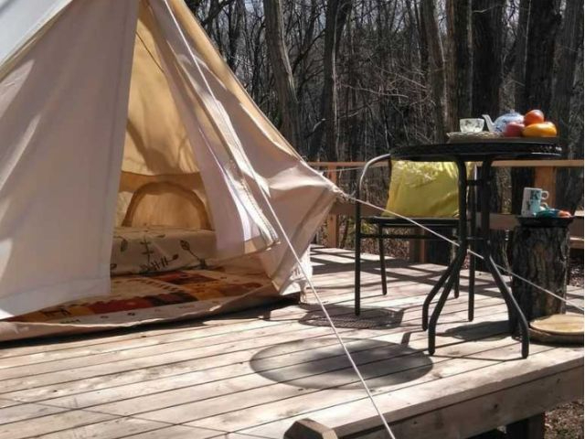 キャンプ体験テントの一例になります。ゆったりと至福の時間をお過ごし下さい。