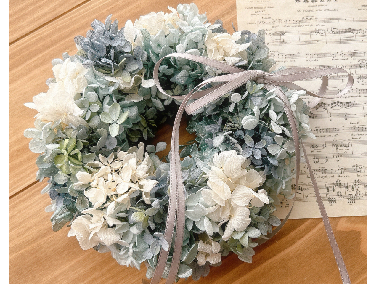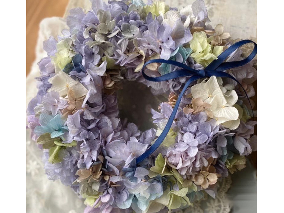 お好みのプリザーブドフラワーの紫陽花で素敵なリースを作りましょう♪フラワーアレンジメント・ガーデニング