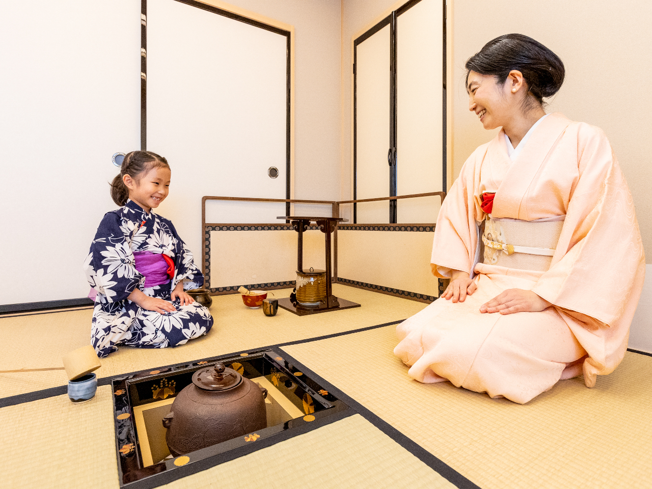 本格的なお茶室で基本の作法、所作、お客様の振る舞い方をご体験いただき、