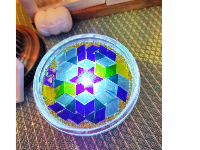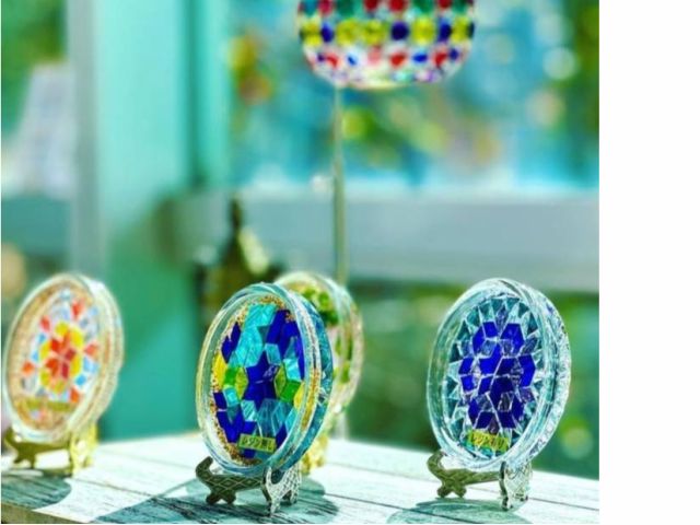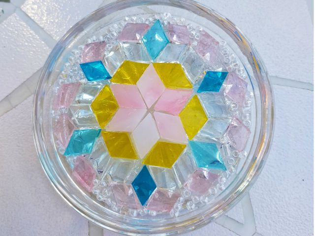 トルコランプにも使用するモザイクガラスを使用してコースターを作ります