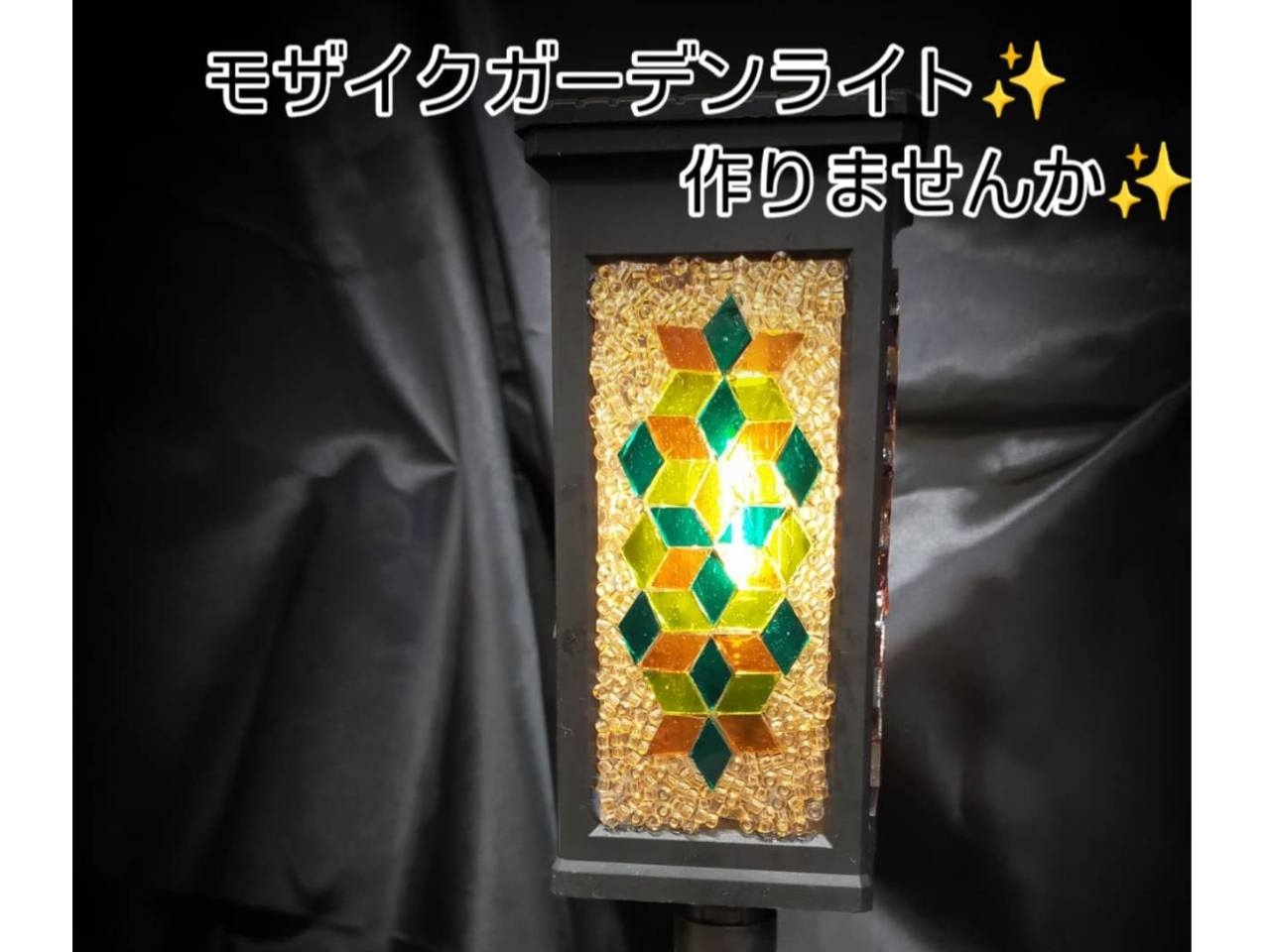 本場トルコランプと同じモザイクガラスを使って小型モザイクガラスランタンが作れます