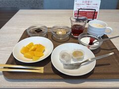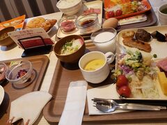 サラダ(ブロッコリーと思ったら、ロマネスコという野菜で集合体苦手なので、目をつぶって食べました)、和洋食、卵は生と茹で有、名古屋メシ、マグロ刺身、パン、デザート、、、どれも多過ぎず少な過ぎず、こまめに追加もされていて、充実した内容でした。
