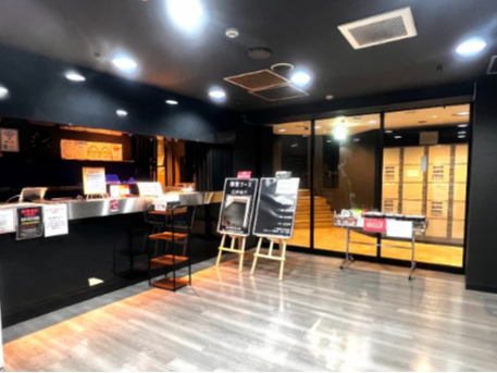 • いらっしゃいませ!履物はシューズロッカーの中に入れていただきます。広々ロビーでお出迎え♪お菓子やアルコール、紳士用下着やヘアオイルなどの物販も!