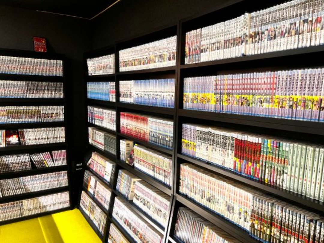 話題の最新作から言わずと知れた名作まで! 約5000冊のコミックが楽しめる♪ つめた〜いアイスやドリンクの自販機も置いてます!