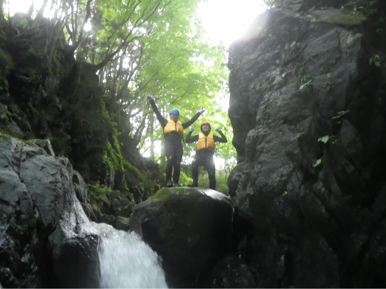 ツアー中川に飛び込んだり、天然のヤマメ、イワナを見つけたりすることが出来ます♪沢登り(シャワークライミング)