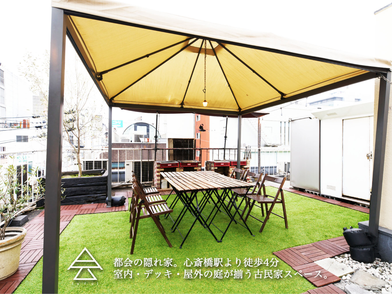 【6名以上/手ぶらBBQプラン!】大阪アメリカ村。喧噪の街から、階段を上へ。 古びたビルの屋上に建つ、青空の下の古民家で貸切BBQ!《ファミリー・友人グループにオススメ》