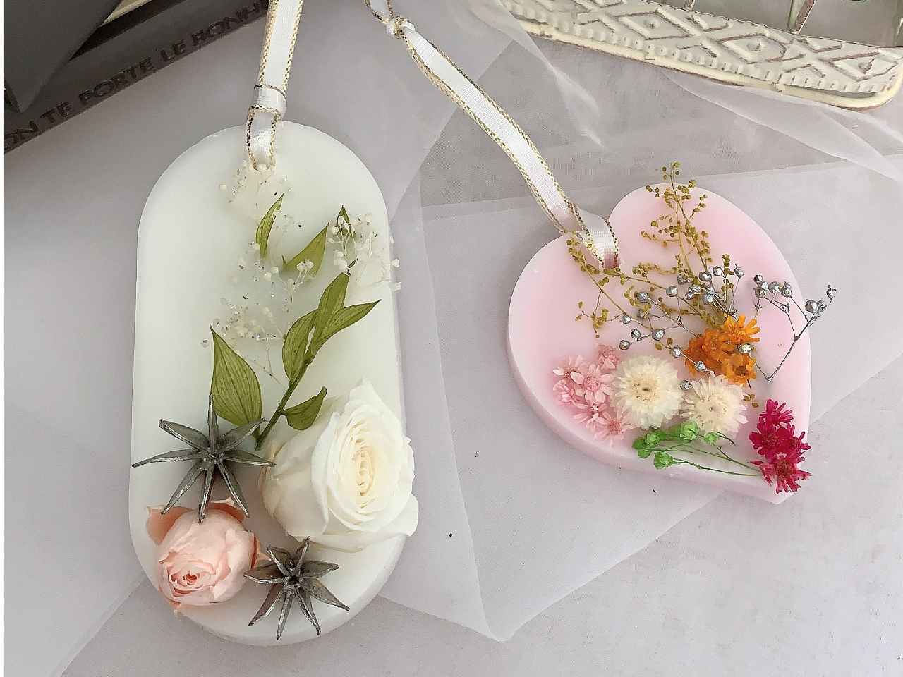 キャンドル材料にアロマオイルと花を融合させたサシェになります♪