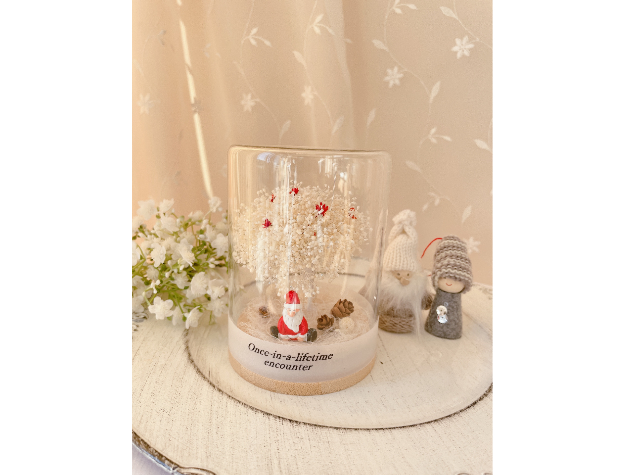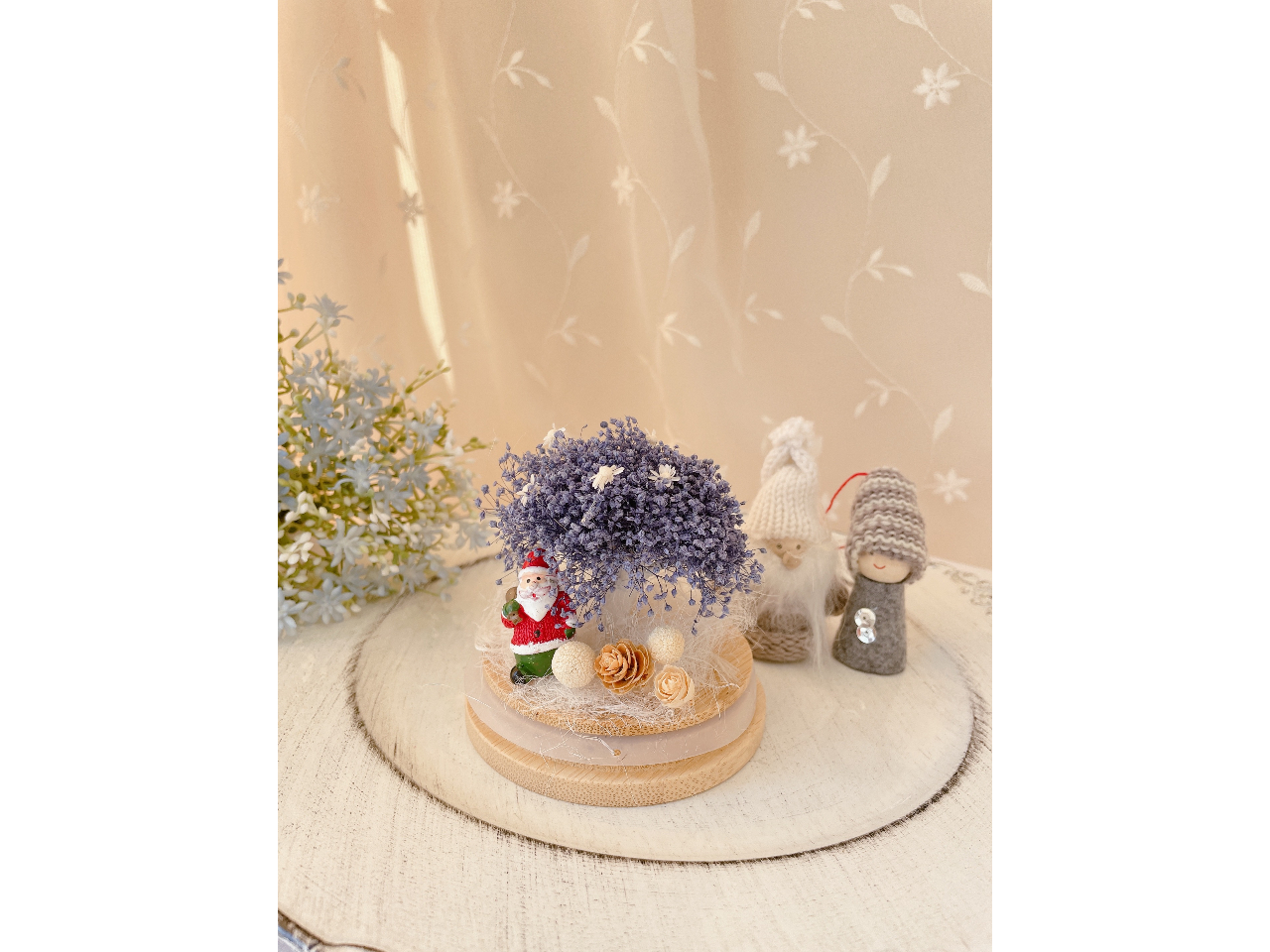 *お好みのカスミソウでツリーを作り、ツリーの下には可愛い小さな木の実を置きます