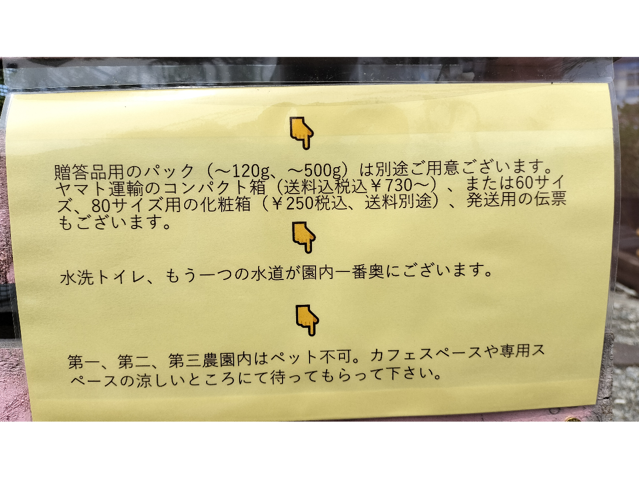 ★摘み取り農園(第一、第二、第三)内はペットお連れ出来ません。完全に果実とを遮断できるカートにお乗せ頂ければ可能