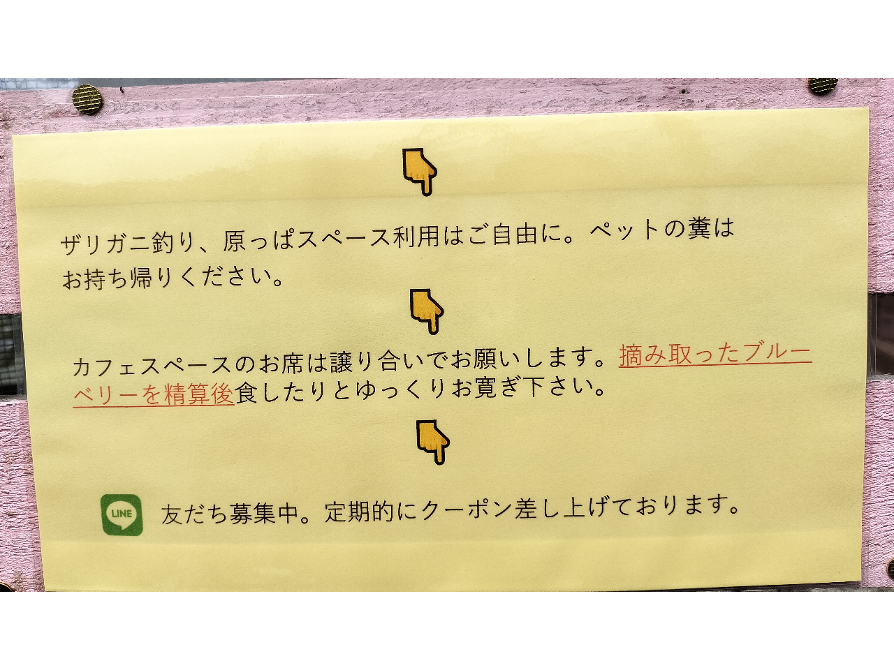 ★パーキングから至近距離でのご滞在になります。両手が自由な、最低限の格好が摘み取り中は便利です。大きな手荷物は持ち込みをご遠慮しています。