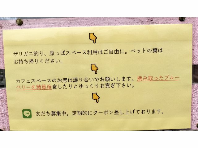 しかしながら、〜6/15(日)以前にじゃらん経由での食べ放題をご希望でしたら、公式ラインまでご一報ください。現在は公式ライン友だち限定で食べ放題の受付をしております。”サチブルーベリーファームオフィシャル”で検索してメッセージを下さい。40分間食べ放題・大人¥2000、小人(5歳から小学6年生まで)¥1000共に税込