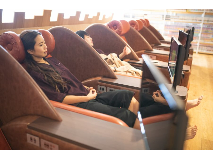 館内にはお風呂、サウナ、岩盤浴、宿泊、お食事、もみほぐし、エステがあり、ゆったりお楽しみ頂けます♪