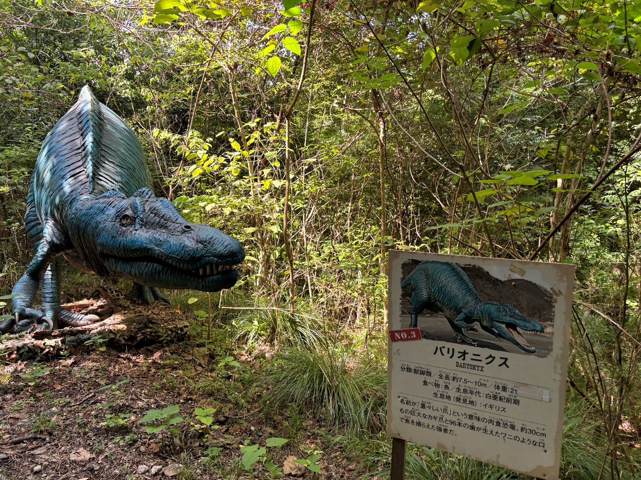 第8駐車場から約5分ほど歩くと森の中にディノアドベンチャー名古屋の看板が出現!