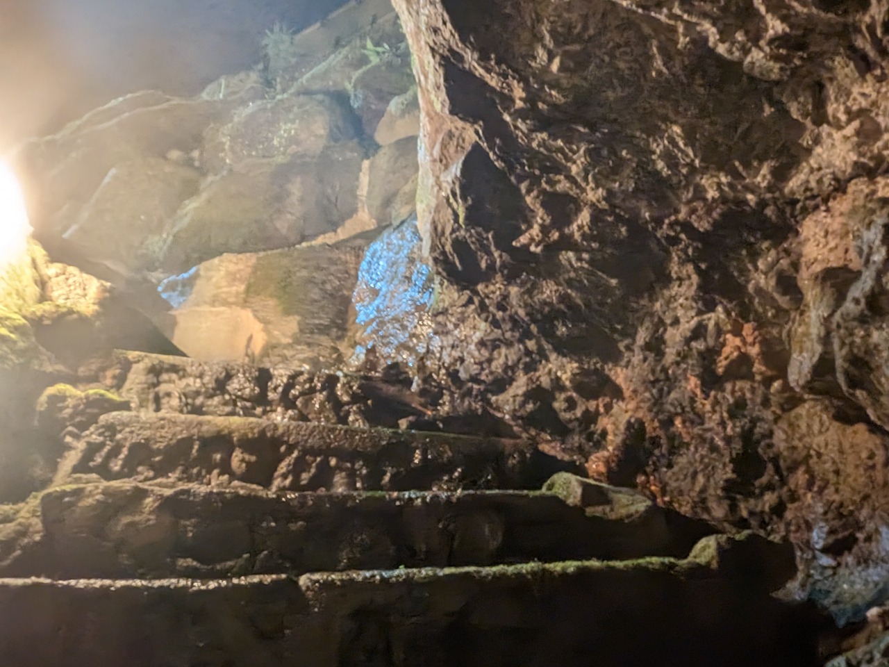 溶岩洞窟と40年前に造られた浴槽がでてきました。