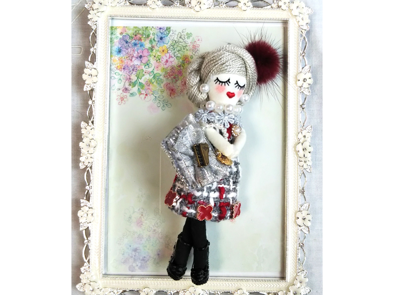 ルルベちゃんを初めてお作りになる方にお薦めです。ワンピースになるツイード生地、アクセサリーや靴、バッグなどのアイテムを選んでオリジナのルルベちゃんバッグチャームをお作りいただけます。