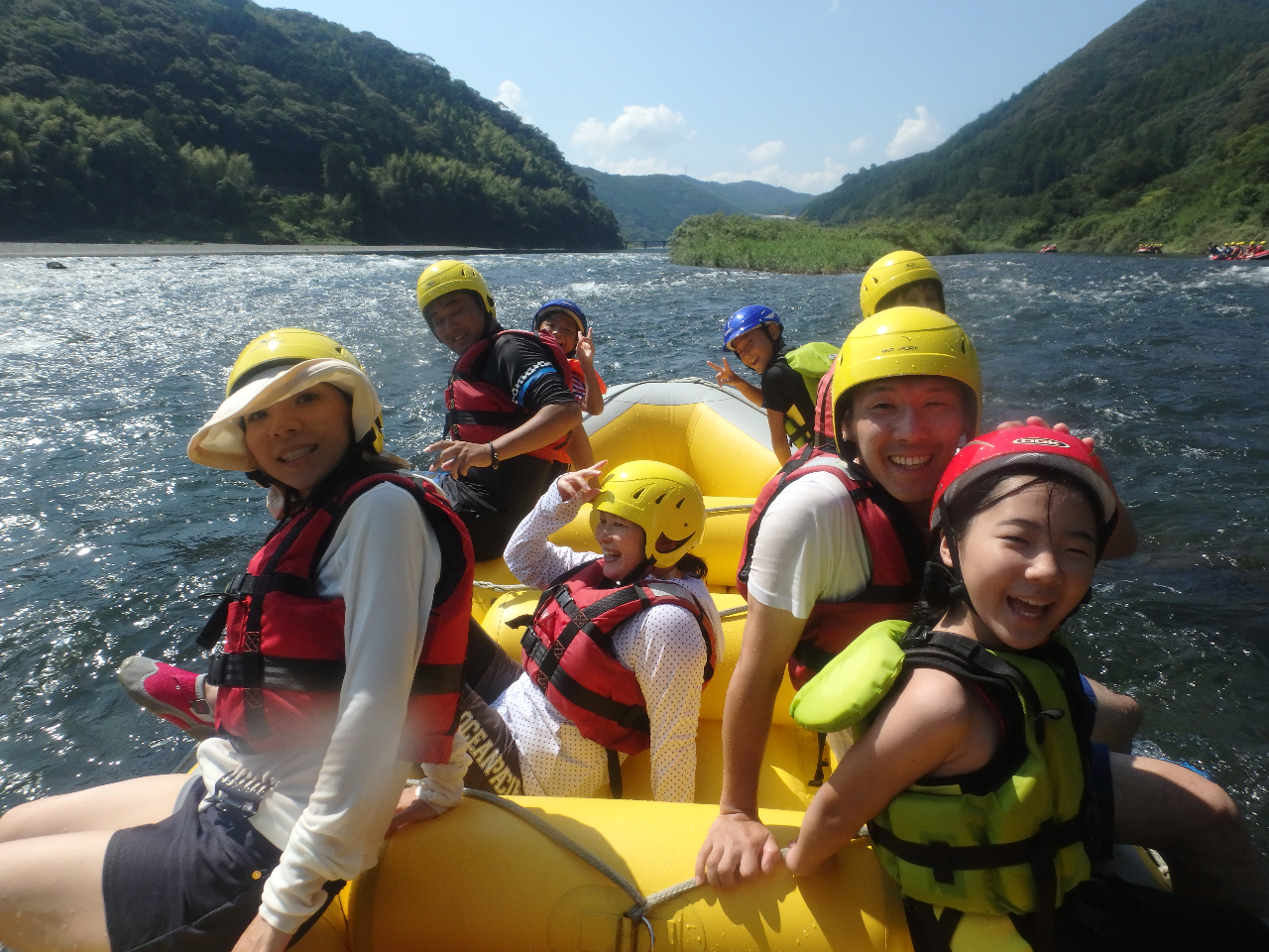 激流ではないので3歳から参加OKのゆったりコース。雄大な自然の中で、思いっきり水と遊んでくださいね。ラフティング