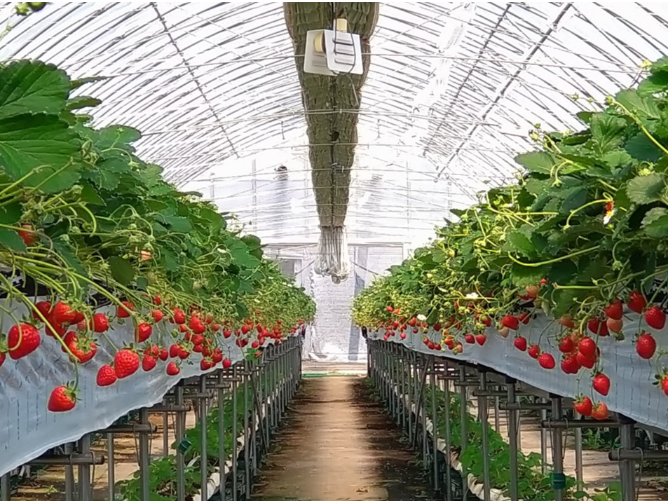 全天候型ハウスで徹底した温度管理と水管理で”一年中”を可能にしています。