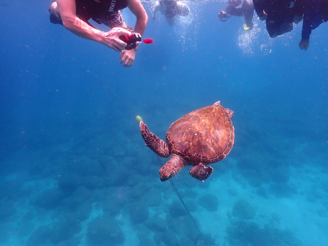このプランでダントツ人気な生物。ウミガメ。運が良ければ、野生のウミガメに会え、一緒に泳げます。