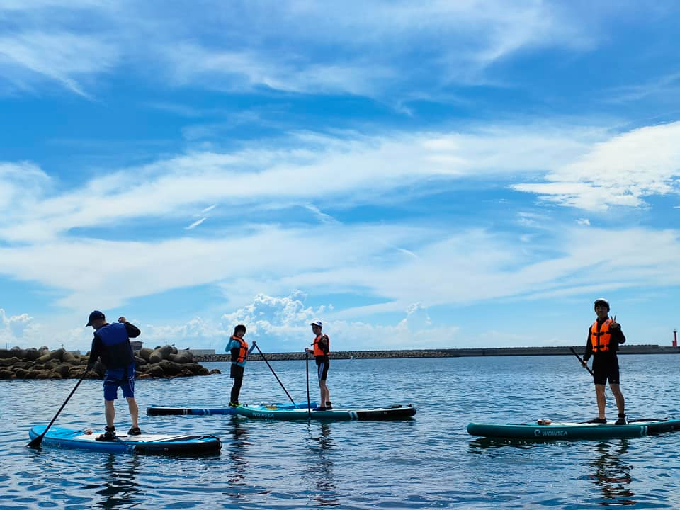 B波の穏やかなところでカヤックやSUP体験を行います。 60分