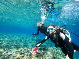浅瀬のサンゴも非常にきれいで、ウミガメも出会えるかも!?スキューバダイビング