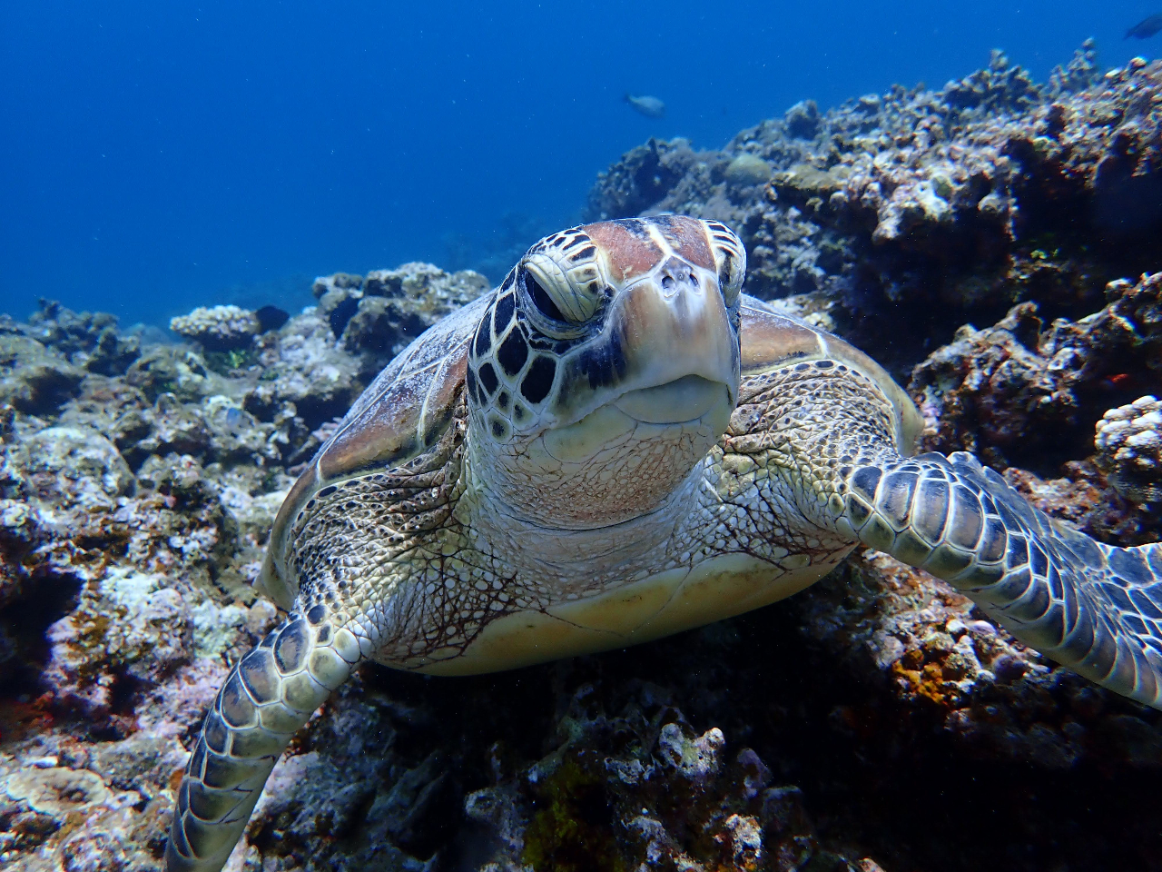 浅瀬のサンゴも非常にきれいで、ウミガメも出会えるかも!?スキューバダイビング