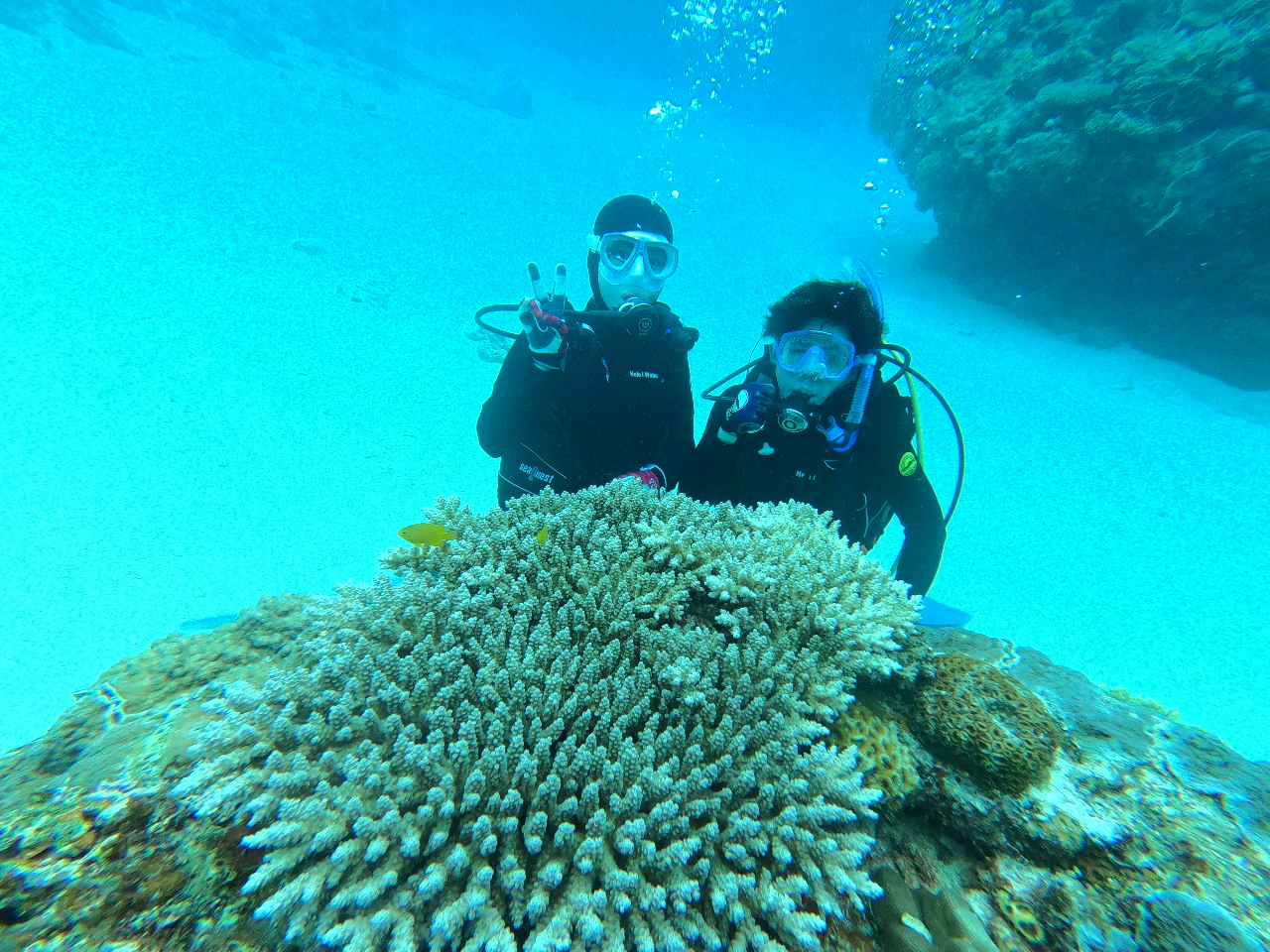 沖縄県本部町のゴリラチョップのカラフルサンゴで感動のダイビング体験♪