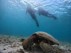団体のツアーの自由時間を利用して、ホテルから近いわいわいビーチで体験出来るCHURAさんのシュノーケリングを選びました。丁寧なレクチャーのあと、私達のペースに合わせて沖合へ。カラフルな魚たちを観察しましたが、なかなかウミガメには出会えませんでした。いそうな場所に何か所も連れて行ってくださり、出会えた時は本当に感激しました。さすがプロ!ウミガメは一生懸命に海草を食べていましたが、時々、海面に出て空気を吸う姿はとても可愛かったです。写真もたくさん撮っていただいて素敵な思い出が残せました。帰りの飛行機の中で主人が楽しそうにシュノーケリングの話しをしていたので、CHURAさんにお世話になって本当に良かったなあと思いました。ありがとうございます。