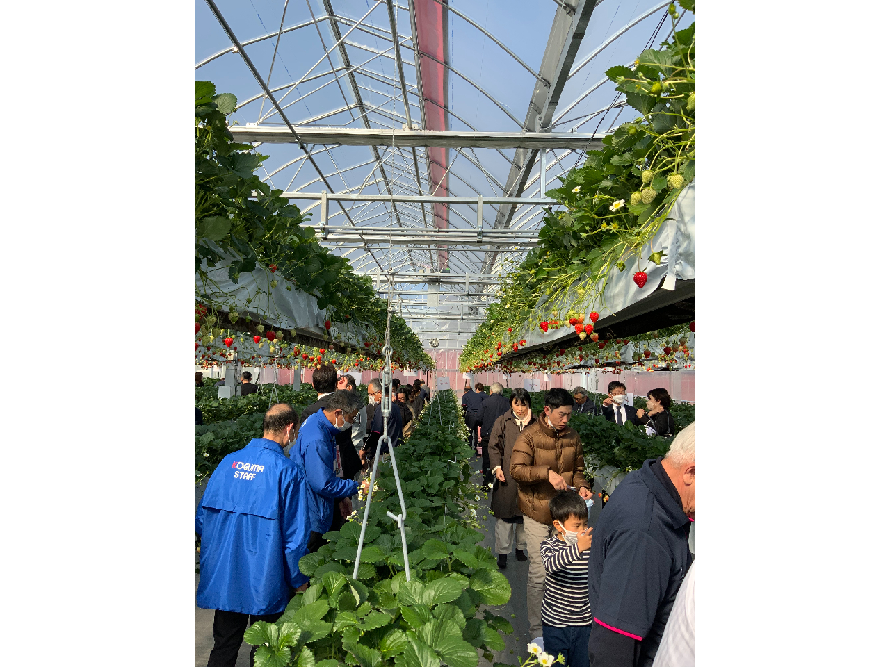 2023年2月にオープンしたいちご狩りができる観光農園です。全国でも珍しい吊り下げ式の栽培方式のハウスと今季新設の高設栽培ハウスの両方で最大10品種のいちご狩りを楽しめます。
