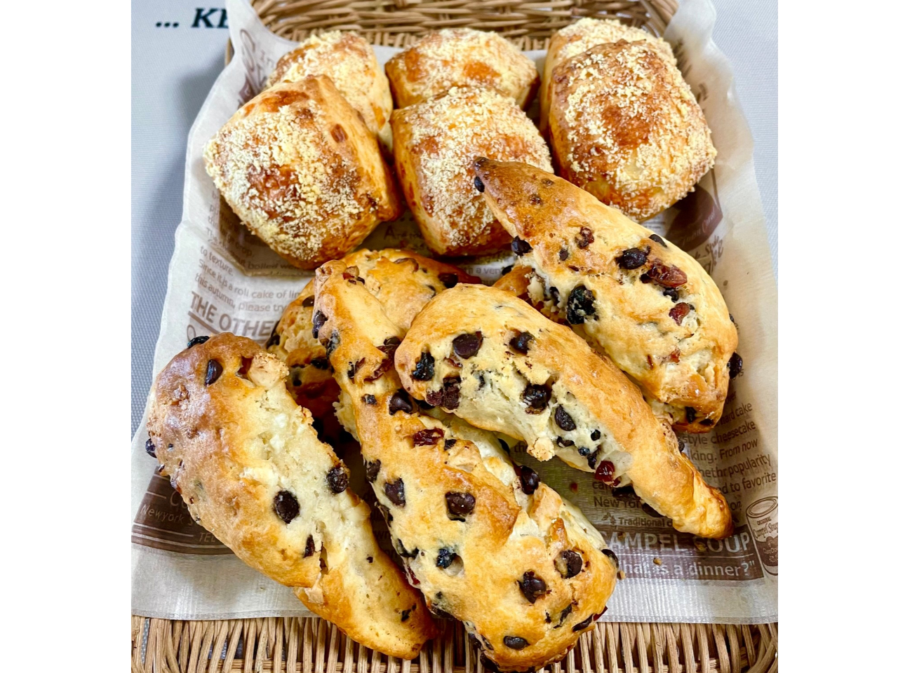 甘い「クランベリーショコラ」と塩味の「Wチーズ」の2種類をつくります。洋菓子・パン作り
