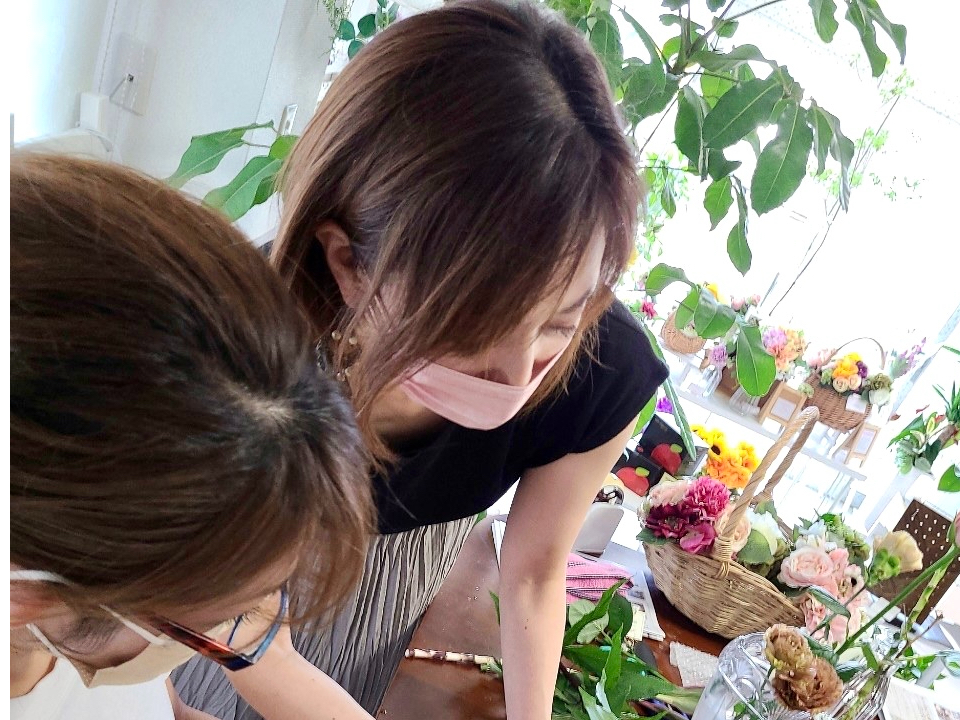 前日に仕入れをした新鮮なお花でレッスン!!