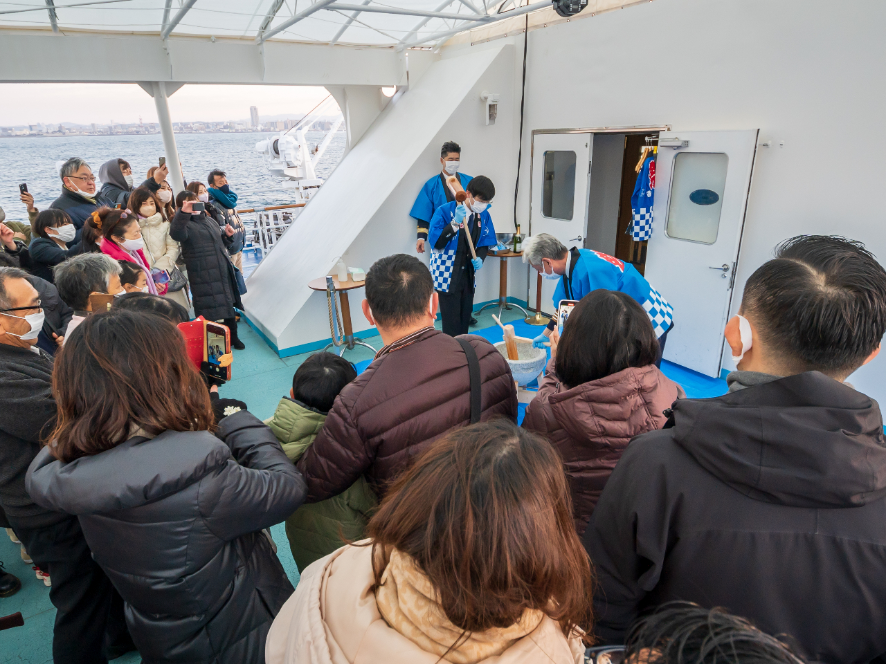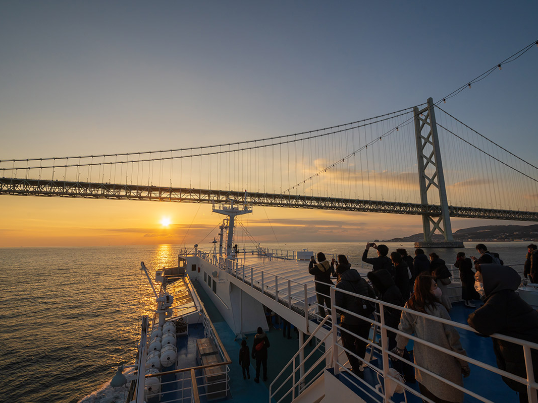 明石海峡大橋の真下をくぐり、初日の出を間近に望めるレストランクルーズ船は、
